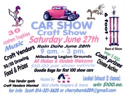 We are having our annual Car Show June 27th. We will have Music, Chinese Auction, cash drawings, craft vendors, food trucks and a loudest Exhaust Competition