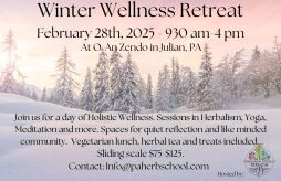 Join us for a day of holistic wellness. A vegetarian lunch, Tea and Treats are provided. Space is limited. Cost is sliding scale $75 – $125. Please pay what you can afford in the scale. We have classes throughout the day but also spaces for quiet contemplation/stretching or relaxation.